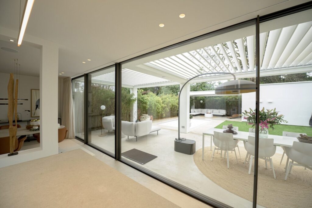 Dit geavanceerde schuifdeursysteem combineert architectonische vrijheid met minimale zichtlijnen. Het resultaat: een open karakter, een strakke uitstraling en maximale lichtinval.