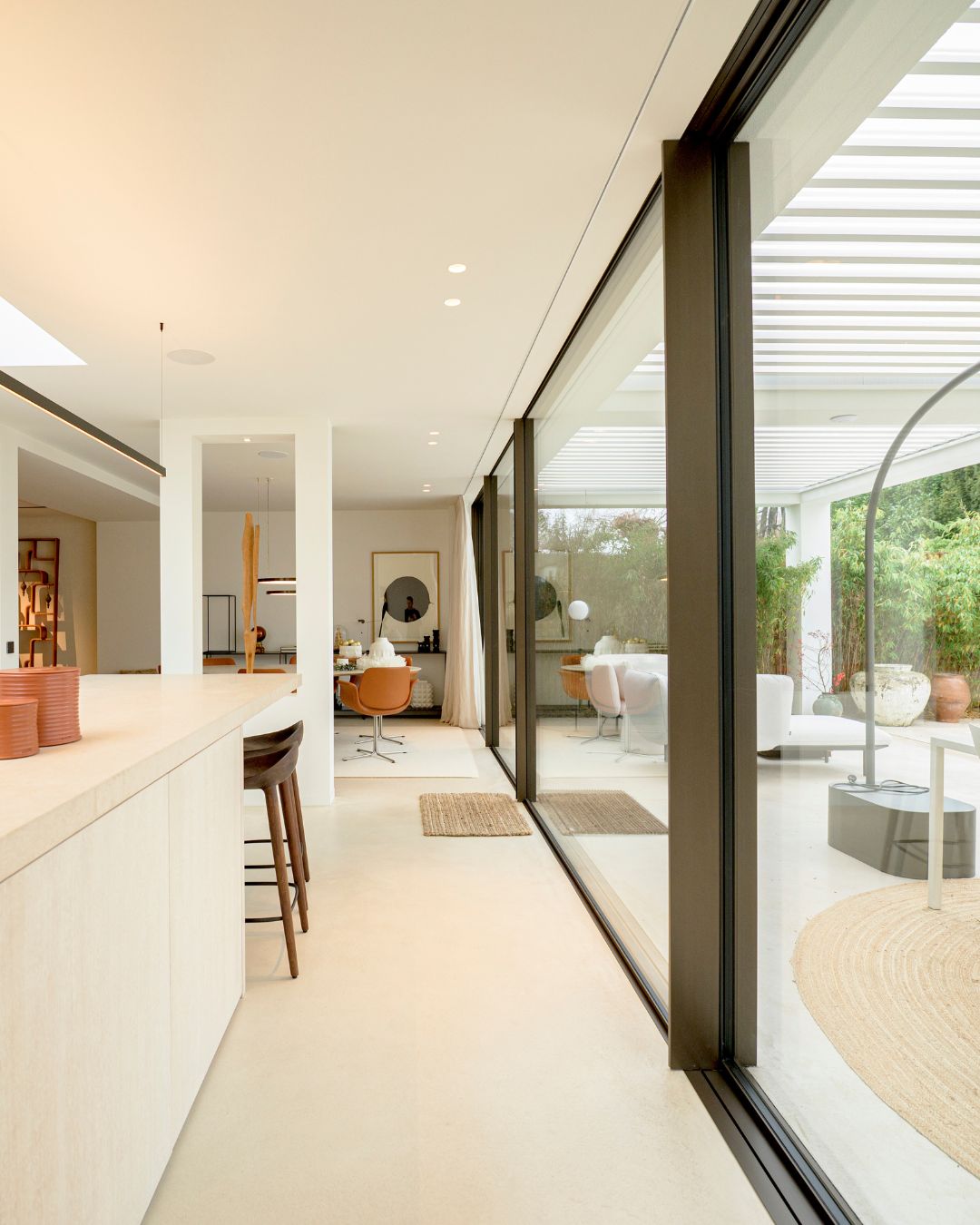 Dit geavanceerde schuifdeursysteem combineert architectonische vrijheid met minimale zichtlijnen. Het resultaat: een open karakter, een strakke uitstraling en maximale lichtinval.