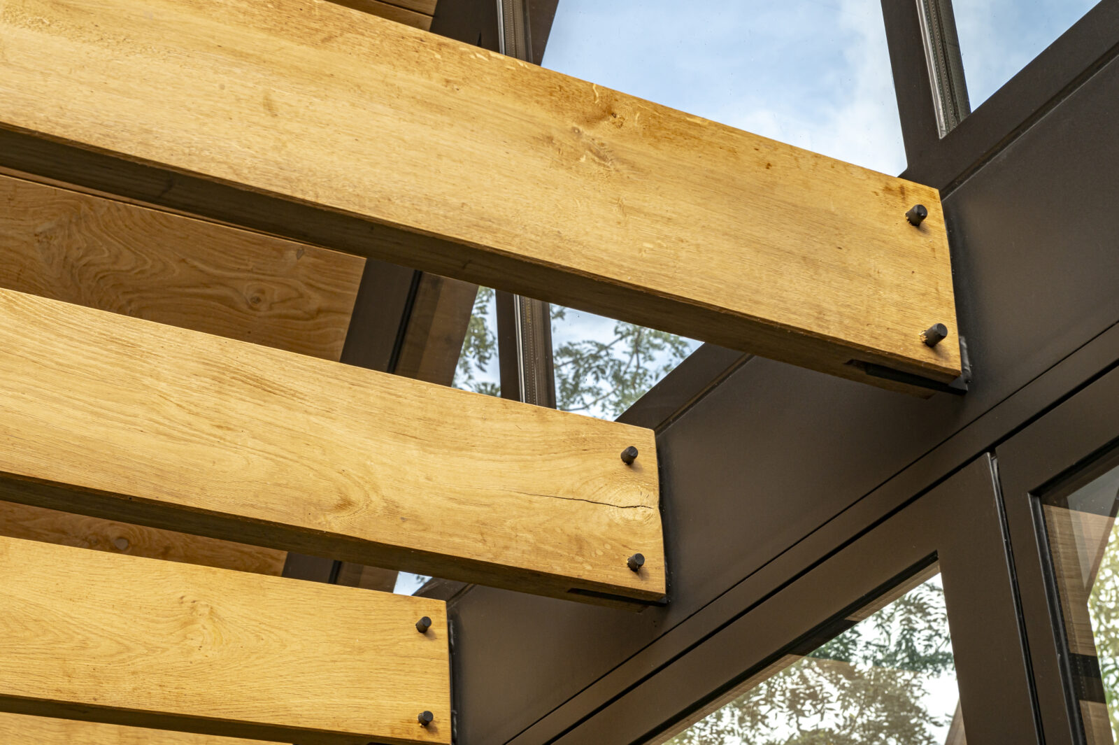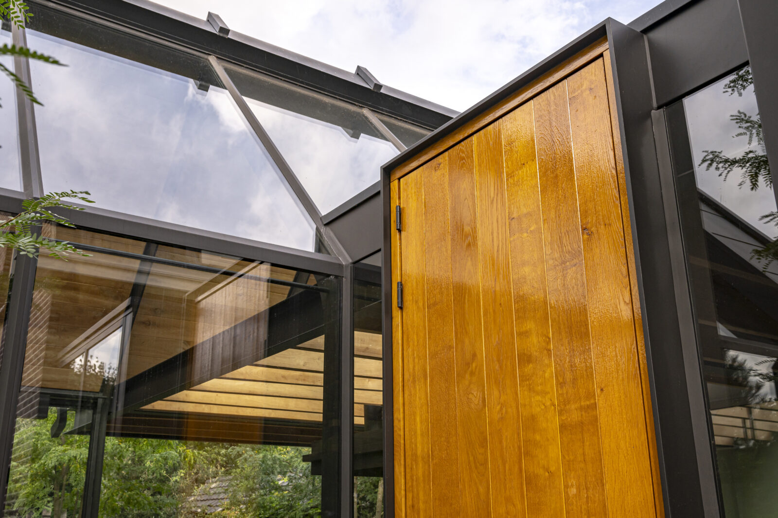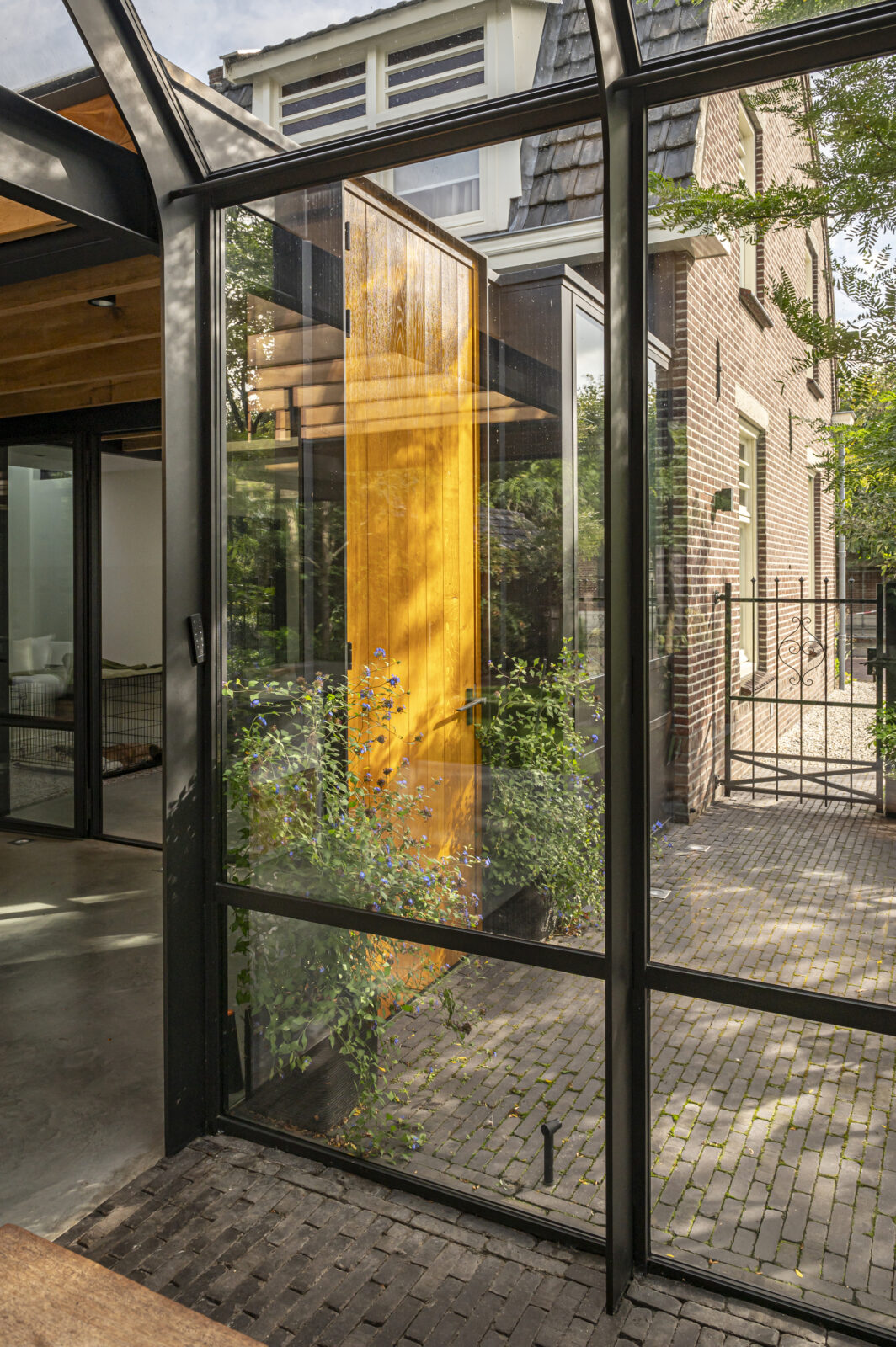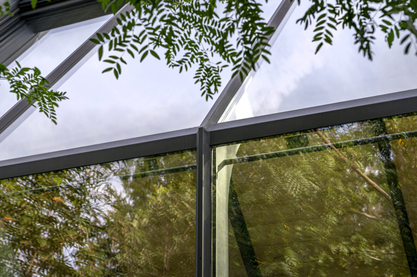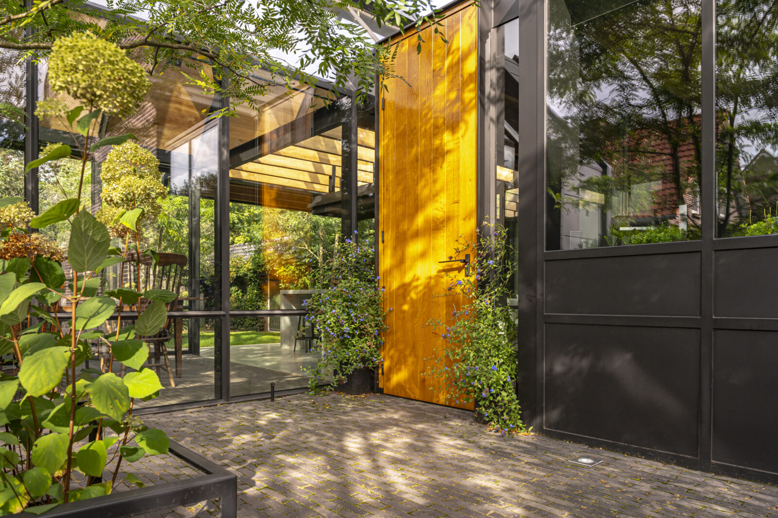 Wat deze aanbouw echt uitzonderlijk maakt, is de naadloze samensmelting van binnen en buiten. De glazen wanden vormen geen barrières, maar een vloeiende overgang tussen de binnen- en buitenwereld.